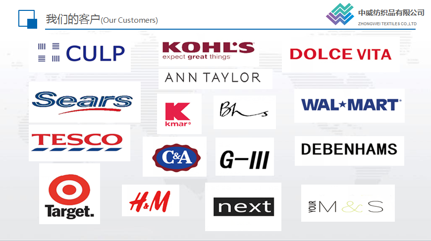 中威紡織主要經(jīng)營(yíng)麂皮類家紡及各類服裝面里料,并可根據(jù)客戶要求研發(fā)、生產(chǎn)及深加工各類面料。公司產(chǎn)品遠(yuǎn)銷美國(guó)、墨西哥、南美、歐洲等世界各地。公司自成立以來(lái),憑著優(yōu)良的品質(zhì)、合理的價(jià)格以及完善的服務(wù),贏得了國(guó)內(nèi)外客戶的信賴。目前公司已與世界眾多大品牌建立了良好的業(yè)務(wù)往來(lái)。